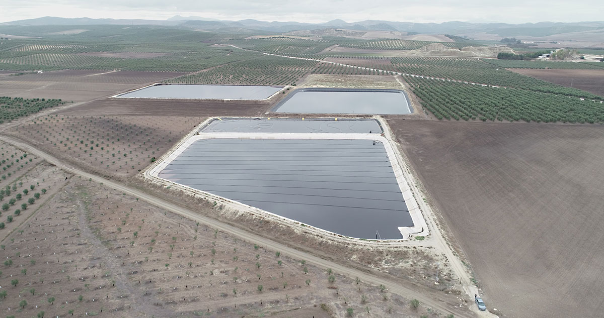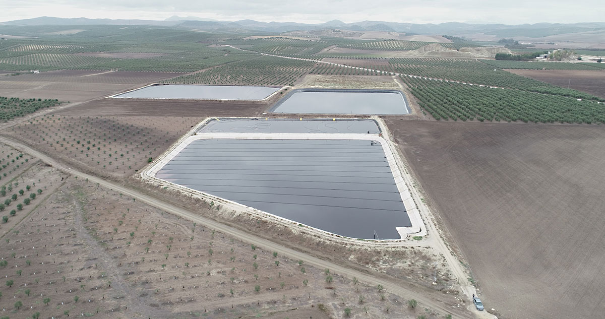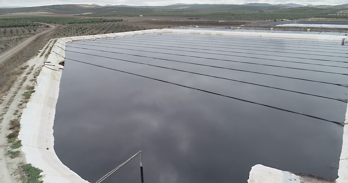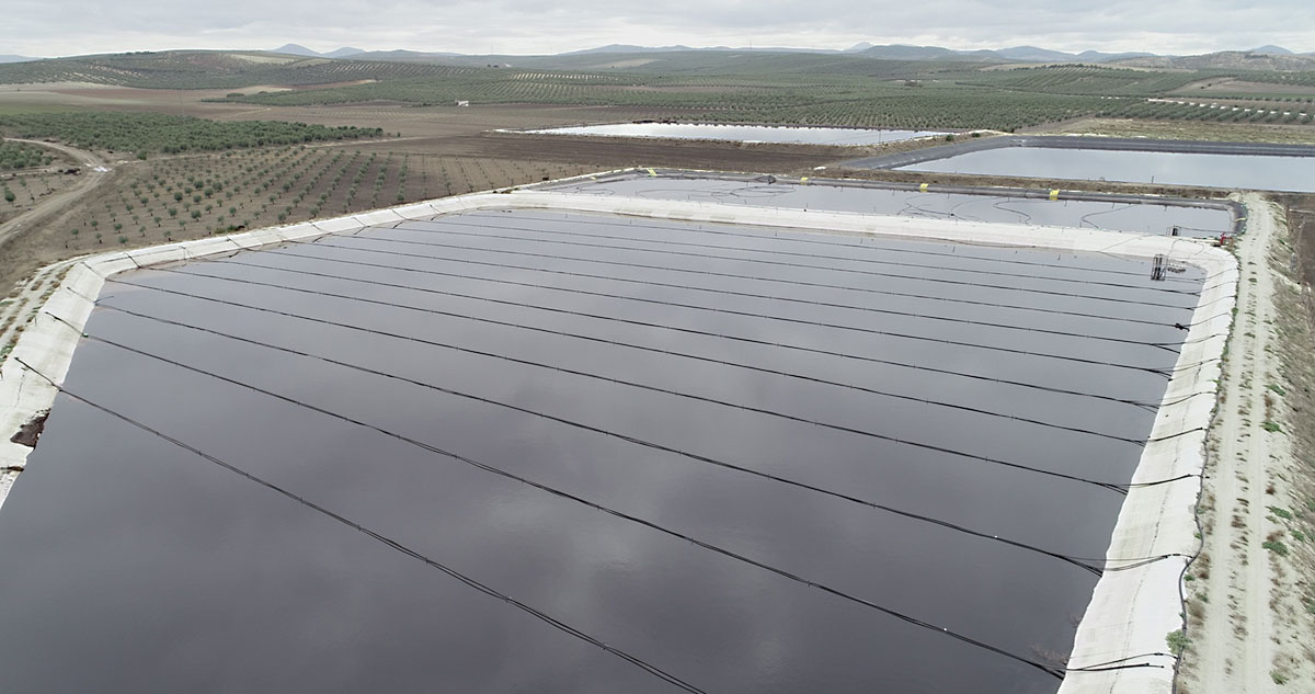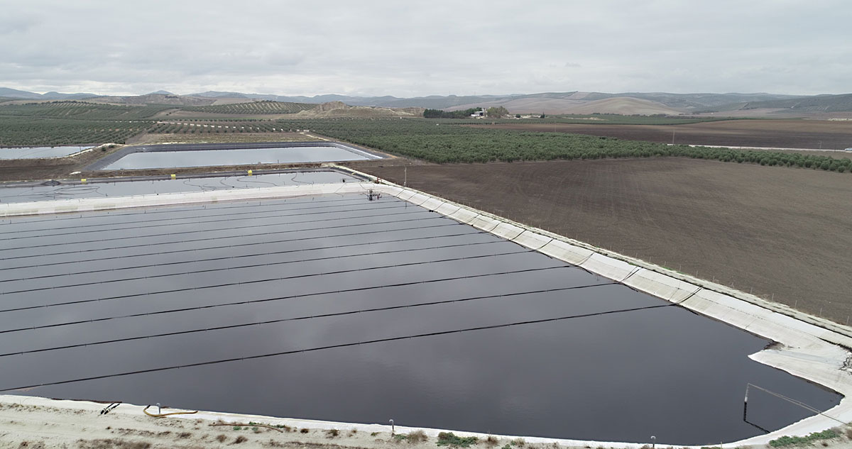 Fotografías de la balsa de la planta de Oleand Las Virtudes (Puebla de Cazalla)