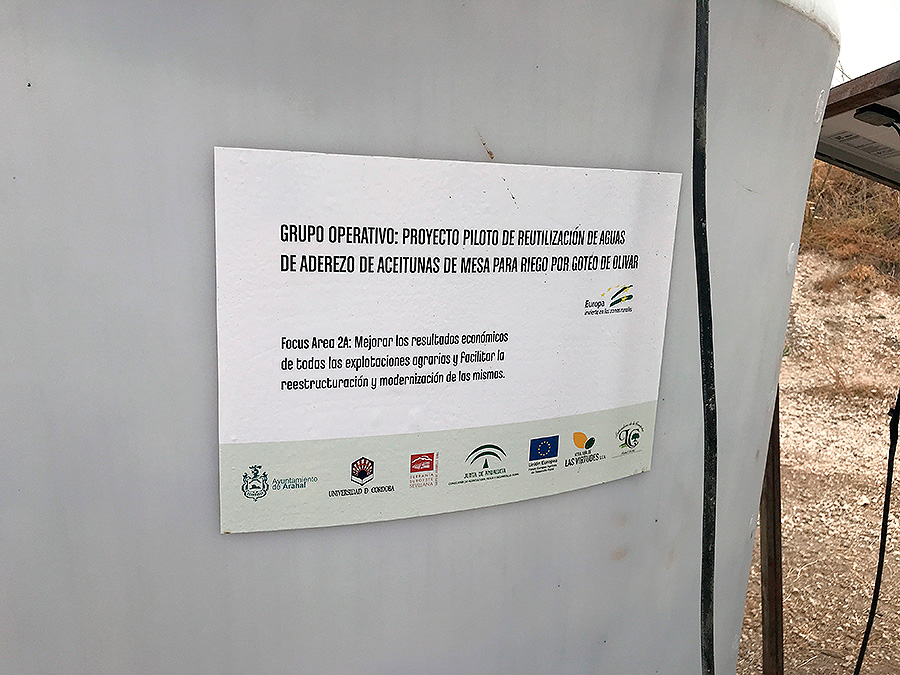 Mediante la aplicación de riego por goteo con aguas procedentes del proceso de aderezo de aceituna.
